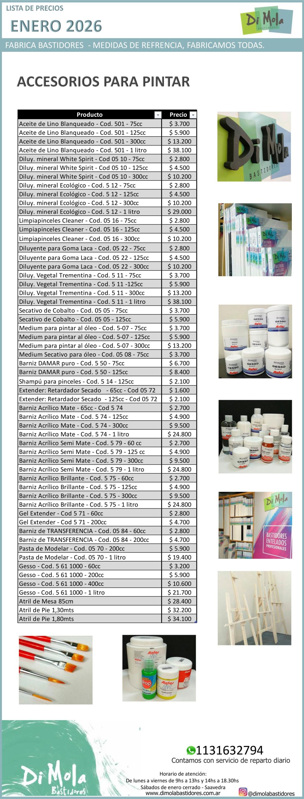 Bastidores, Pinturas y Lienzos